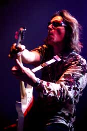 In the midst of this remarkable show a girl in front of us mentioned "Guitars to be the most sexy instrument on earth," it struck me... Steve wasn't just playing music for his fans tonight; he was worshipping and lovingly caressing his Jem. Talking with it, talking to it, caressing, squeezing, and licking it: Vai making love to his guitars is sheer magic. After the 2 hours and 45 minute long musical joyride, the high Priest of rock guitar playing proves to be setting new standards for all players out there, with love for his guitar and music...